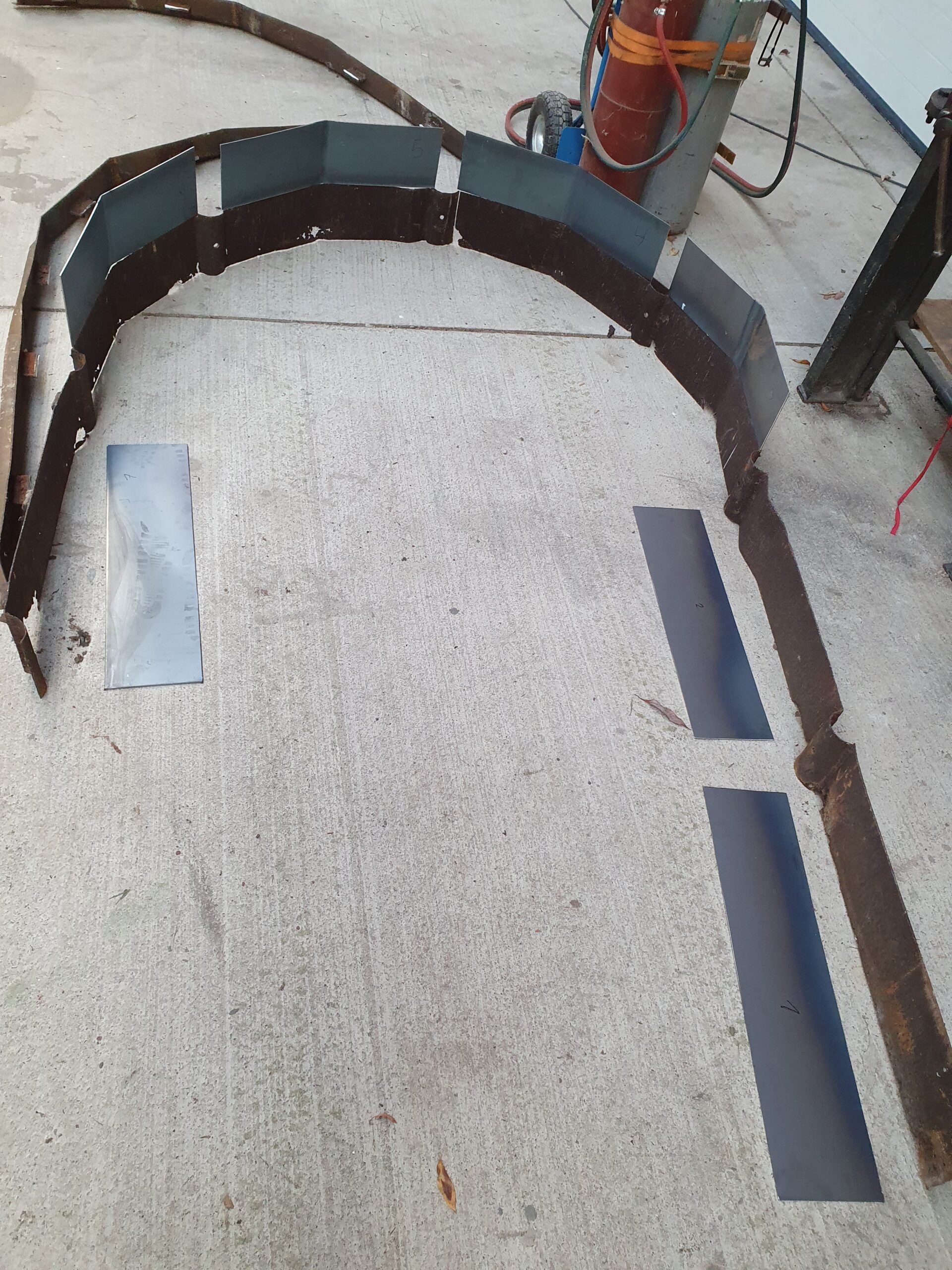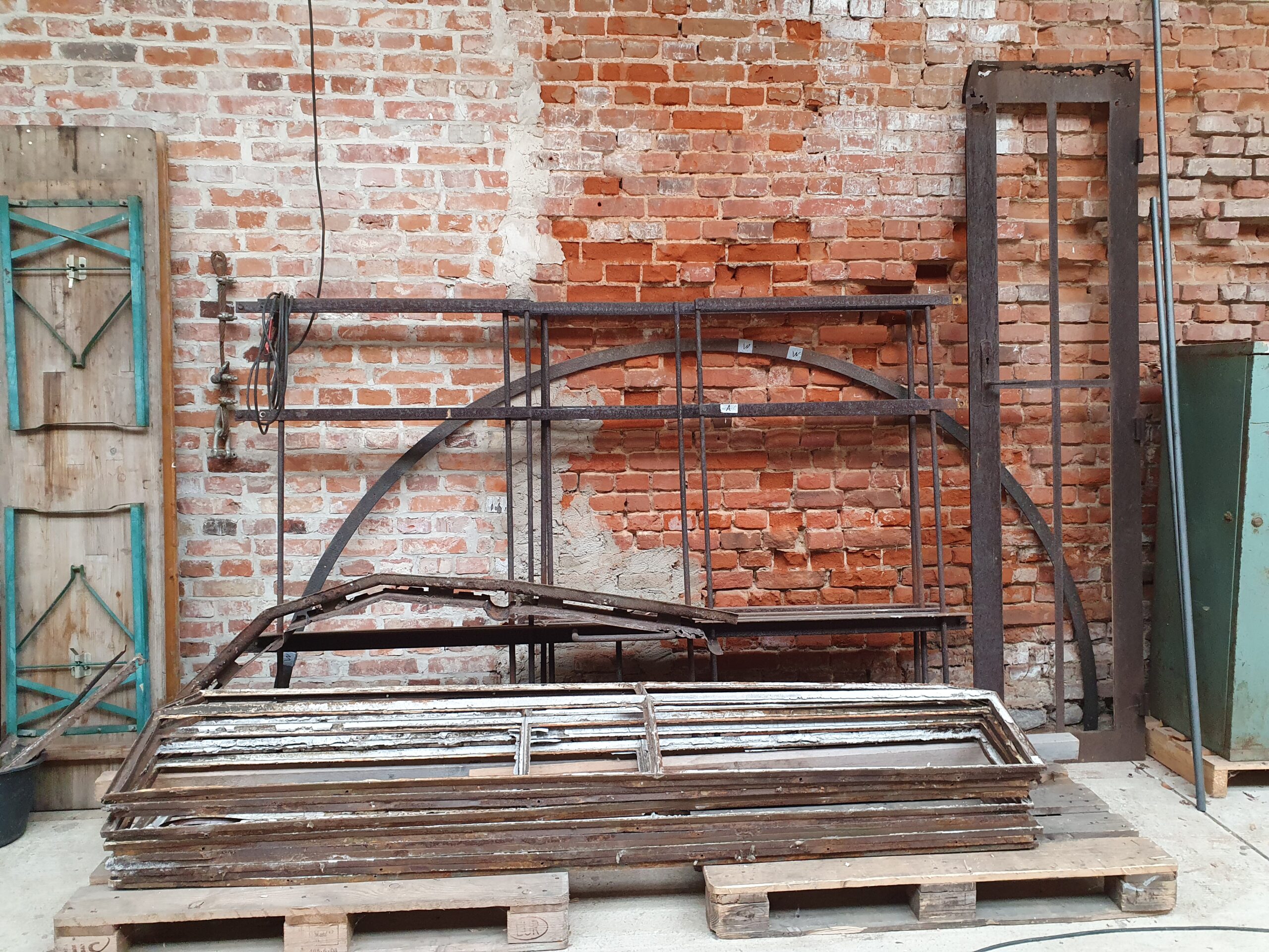 In der Werkstatt wurden alle Metallteile sorgfältig gestrahlt. Auf diese Weise konnte der Umfang der Korrosionsschäden vollständig freigelegt werden. Der untere Bereich der Tür war so stark zerstört, dass er komplett weggerostet war. Hier erfolgte ein aufwendiger, schichtweiser Nachbau. Dabei wurde neues Material nahtlos an die erhaltene Originalsubstanz angesetzt. Kleinere Löcher wurden geflickt und Materialverluste ergänzt. Um einen langlebigen Schutz zu gewährleisten, wurde anschließend ein dreischichtiges Farbsystem aufgetragen. Erst danach wurden alle Teile wieder auf den Turm gekrant und montiert. Diese detaillierte Arbeit ist der Kern einer denkmalgerechten Sanierung.
